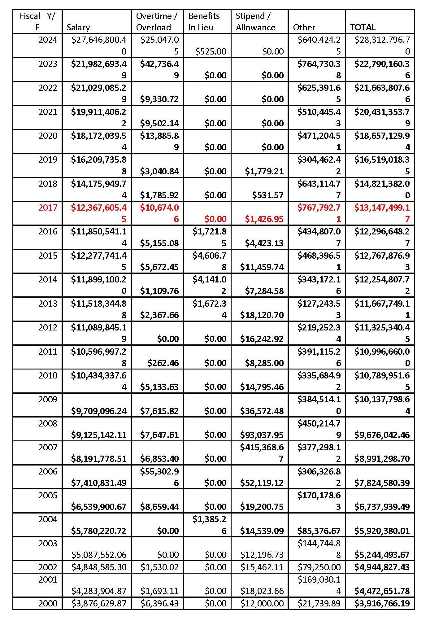 - Total administrative compensation budget in 2017 was $13,147,499.17